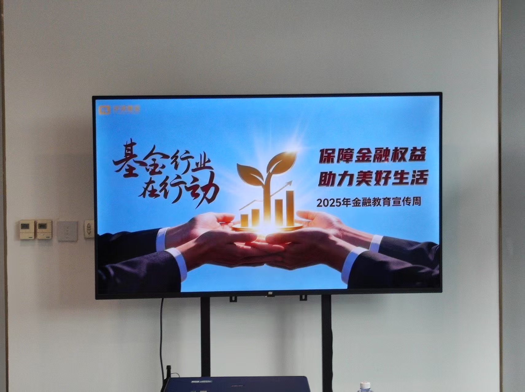 为营造浓厚的活动氛围,我司精心设计并制作了主题宣传海报,我们充分利用公司LED显示屏,全天候、高频次滚动播放活动海报与核心口号,确保了每一位路过的公司员工及到访投资者都能感受到活动的热烈气氛,将金融教育的理念融入日常环境之中。